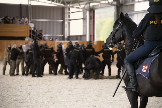 i venkovní jízdárny a pohybovacího zařízení zásadně zlepšila kvalitu výcviku. „Zejména krytá jízdárna poskytuje dostatečný prostor pro práci se zapojením většího počtu policistů, služebních koní, psů a figurantů s využitím různého překážkového materiálu,“ uvedl vrchní komisař Krajského ředitelství policie Jihomoravského kraje Lukáš Líška. Výcvik se může díky zastřešení objektu plánovat celoročně.